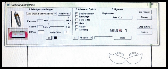 Look at the picture above and in the middle of your cutting toolbar you will see "Advance Options." You will now click "Selected Objects."